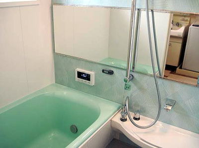清潔感のある淡いグリーンのお風呂に生まれ変わりました。 |