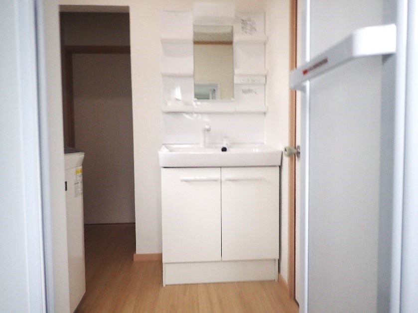 | 浴室改修に伴い、今回洗面室も改修します。 間仕切り壁も全てコンクリートパネルですので配管替えも困難です。 |