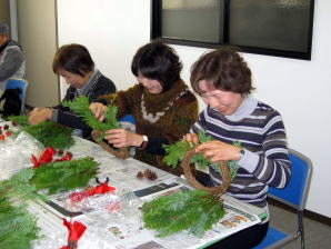 今回はヒバを使った自然味あふれるリースを作ります。ヒバのいい香りがお部屋に広がっていました。
