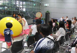 ブレスレット作りに参加後、最新商品の展示、マジックショーや沖縄民謡コンサートなどのイベントを