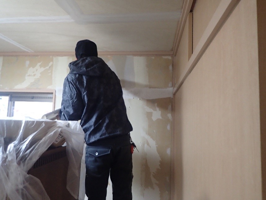 築30年以上と古くなった大切なお住まい。この度、1階の洗面・トイレ・和室・リビングをリフォームする こととなりました♪ まずは洗面室とトイレを解体し、一室化、夫婦お二人での生活ですので、間仕切りは必要なし。 今後介護が必要となった場合も想定し、広く使えるように改修いたします♪ ![]() 軽量鉄骨+2×4工法の建物ですので、壁をめくると鉄骨ブレスが入っていました。 床は2×4材に15mmのベニヤ+5.5mmのベニヤを増し張りしています。 ボンドと釘で施工していますので撤去工事は大変です。 住まいながらの工事ですので、1階にしかないトイレは使用できるようにしますので、まずは洗面室の床を 仕上げてしまいます。 ![]() レベルが悪くなった既存の根太は撤去し、束石と鋼製束で補強用の大引きを新設します。 設備配管後、レベルを調整しながら新しく床根太を組んでいきます。 ![]() 根太間に断熱材のスタイロホームを設置、構造用合板を捨て貼りのうえ、既存床と洗面床に9mmベニヤを 増貼りします。 既存の便器は仕上工事が終わるまで仮設置し、使用できるようにしておきます。 ![]() 洗面・トイレ一室化に伴い、既存のトイレ側出入口はふさいで壁にし、洗面室はアウトセット引戸を採用し、 開き戸から引戸に変更致します。 ![]() 古くペコペコしだしたホールの床はビス締めし、リモデル框を設置・フロアを増貼り致しました。 ![]() 洗面室のクロスとCFを貼り終えると、便器と洗面化粧台を設置・接続いたします。 今回トイレはシンプルデザインに先進機能が搭載されたLIXILのサティスS6タイプを、 洗面化粧台は広々ボウルでスッキリ綺麗を極めたLIXILのピアラを採用致しました。 ![]() 毎日、何度も活用する水廻り♪スッキリ広々と仕上がりました♪ ![]() 続いて和室の改修です。今回和室は洋室化に致しますので既存の床を撤去し、床のレベルを調整します。 レーザーでレベルをチェックしながら下地をパッキン調整していきます。 ![]() レベル調整が終わると12mmの構造用合板を増貼し、既存のラミ天井には5.5mmのベニヤを増貼します。 ![]() 床はフロアで仕上げます。天袋は現状で押入れ部はクローゼット化に致します♪ 既存の木枠廻りは塗装し、襖は戸襖に新調し取替です。 ![]() 造作工事が完了すると、壁と天井クロスの仕上工事です。 下地をパテで補修したうえで仕上のクロスを貼って完了です♪和室が洋室に変身しました♪ ![]() 和室の工事が完了すると、リビングの家具等を一旦和室に移動して既存床の補強を致します。 今回フロアは増貼工事ですので、既存床の上に貼っていきます。 ![]() 床フロアと木枠廻りの塗装が完了すると、壁と天井のクロスを貼替し、全ての工事が完了です♪ 在宅での工事でしたので、2期に分け、トータル約4週間と施主様には大変ご不便をおかけいたしましたが、 無事予定通り仕上げることができました♪ 今回、子育てエコホーム支援事業補助金を67,000円活用することができました♪ |