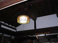 ![]() おしゃれなアジロ模様の天井に、あたたかみのある光のライトで和風モダンを演出しました。 |