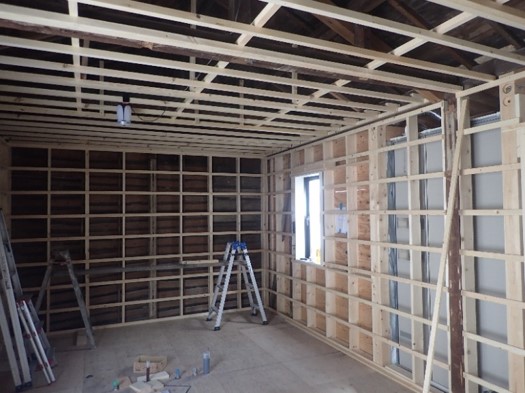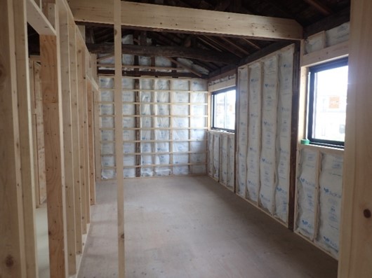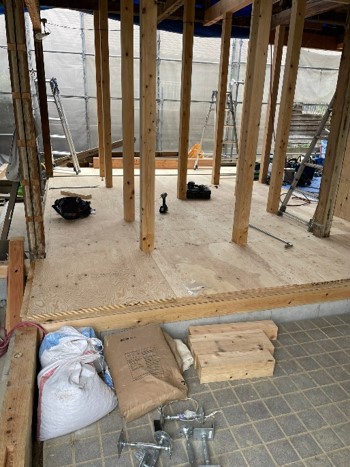 床・壁・天井、古くなった木材、壁は全て竹編みの土壁。 内装は勿論、サッシ・外壁・主要柱を残し全てを撤去! ガラや木材、仕分けをしながら全て手つぶしです ![]() 間取り変更に伴い、余計な基礎や土間のコンクリートも撤去していきます。 長年で腐食した土台や柱、実際に解体してみないと隠れて分からない不備な箇所も徹底して撤去していきます。 ![]() 古くなった屋根のセメント瓦やトタン屋根も撤去。 まだ足場やハシゴもかけられないので安全を確認しながら、一枚一枚手作業で外しながら撤去します。 古くなった野地板は腐食し底が抜けそうになり緊張します。 ![]() 解体工事がほぼ完了し、鋤取った土間に砕石を転圧。防水シートを敷き詰め、 鉄筋アンカーを設置し配筋していきます。 既設の基礎高が低いため床下高は見込めませんが、基礎補強は重要ですので、 土間コンクリートの打設を優先致しました。 ![]() 基礎補強工事が完了すると、1階の階高が低かった為、根太レス仕様を採用♪ 土台、大引きを設置し、床下断熱材「スタイロホーム」を敷き詰めます。 ほぼ全ての土台を取替えました。 ![]() 床下断熱工事が終わると24mmの構造用合板を床下地材としてはっていきます。 続いて2階の床根太もレベルを調整しながら寸5材で取替、12mmの構造用合板をはっていきます。 ![]() ![]() 梁や柱もほとんど入替えし、不安な個所は徹底的に補強していきます。 ![]() 仮設足場も組みあがり、梁や柱の補強がある程度完了すると、現場で加工した増築部の構造材を組上げます。 ![]() 組みあがった躯体・補強した柱や土台、腰高まで防蟻工事を施し、屋根部には12mm構造用合板。 外壁廻りには9mmの構造用合板をはっていきます。 ![]() 躯体の補強や造作が完了すると、アルミ製建具を取付けます。 今回、高い省エネ性能の住宅取得者に対し、グリーン住宅ポイント制度が閣議決定され、 「新たな日常」等に対応した商品や追加工事に交換できるポイントが発行されます。 住宅のリフォームでは開口部の断熱改修としてペアガラスサッシ等も最大30万ポイント適応です♪ ![]() 増築部の小屋根組みが完了すると大屋根の下地も調整・補強しながら12mmの構造用合板をはり、 直後、雨漏れ対策にルーフィングをはっていきます。 ブルーシートだけでは防ぎきれない漏水もこれで一安心です♪ ![]() 大屋根が完了すると下屋根とバルコニーの造作です。 バルコニーの床には12mmの構造用合板を施工した上に 12mmのケイカル板を増張りします。 ![]() バルコニーの防水はFRP防水を採用♪ガラス繊維のマット敷き詰め、FRP樹脂を塗り固めます。 一日乾かし、研磨し、防水トップコートを塗布。滑り止めに軽砂をまき、ノンスリップに仕上げます。 ![]() 雨仕舞が完了すると、内装の造作開始です♪ 既設の通し柱を基準に間柱や胴縁にて調整し、さらに補強・補足。 外壁・屋根面には断熱材を充填♪その上にプラスターボードやラワン合板をはる下地です。 工事開始直後に始まった新型コロナウイルスの影響での『ウッドショック』木材の価格高騰及び不足。 各協力業者さんにご協力をお願いしつつも苦戦。 お客様の負担にできるだけならぬよう、社長も現場作業に参戦し奮闘したしました♪ ![]() 外壁には構造用合板の上、ウォーターガードのタイベックシートを貼り付け、 電気工法でのサイディングを使用♪ サイディングは親水セラと光セラの2種類を使用し、ひび割れが酷かったモルタル壁の既設から一新♪ モダンな外観に生まれ変わりました♪ ![]() 壁下地と天井のPB貼りが完了すると、床のフロアーを貼っていきます。 今回、2階の床には12mmの構造用合板を貼った上に防音効果を上げる為、 さらに12mmのPBを増し張りしています。 フロアーも12mmですので、合計36mmの床となっています♪ ![]() 建具枠の設置やフロアーが貼り終わると次は壁のプラスターボード貼りです。 棚や手すりなどが付く箇所にはラワン合板を貼っていきます。 洗面室やキッチン廻りには耐水ボードを使用♪ ![]() クロス仕上の前にボードの継ぎ目やビスあとなど、型が残らないよう丁寧にパテで埋めていきます。 出隅にはコーナービートを取付整形♪ ![]() 樋のかかり、足場も外れ、バルコニー手摺にはアルミ製の笠木、上部にはテラスを設置♪ ![]() 設備配管工事も完了し、裏庭は整地。砕石を転圧♪配筋したうえでコンクリートを打設♪ ![]() 天井や壁に沢山の種類の中から施主様自らこだわって選んだ壁紙を貼っていきます♪ 小さな見本帳から選んだ色や模様が想像通りに仕上がるか完成するまでわかりません♪ |